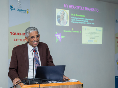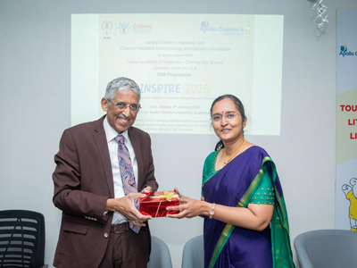 Held on 4th January 2026 at Apollo Children’s Hospital, INSPIRE 2026 was a wholesome and impactful CME with a fully packed auditorium. The program comprehensively addressed practical day-to-day management of paediatric diabetes, the latest research, government facilities, NGO support, nutrition, physical activity, rapidly evolving diabetes technologies, and the importance of peer support groups—delivered by the most eminent faculty.
