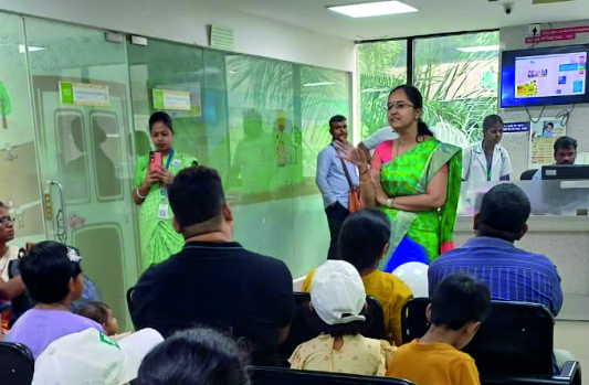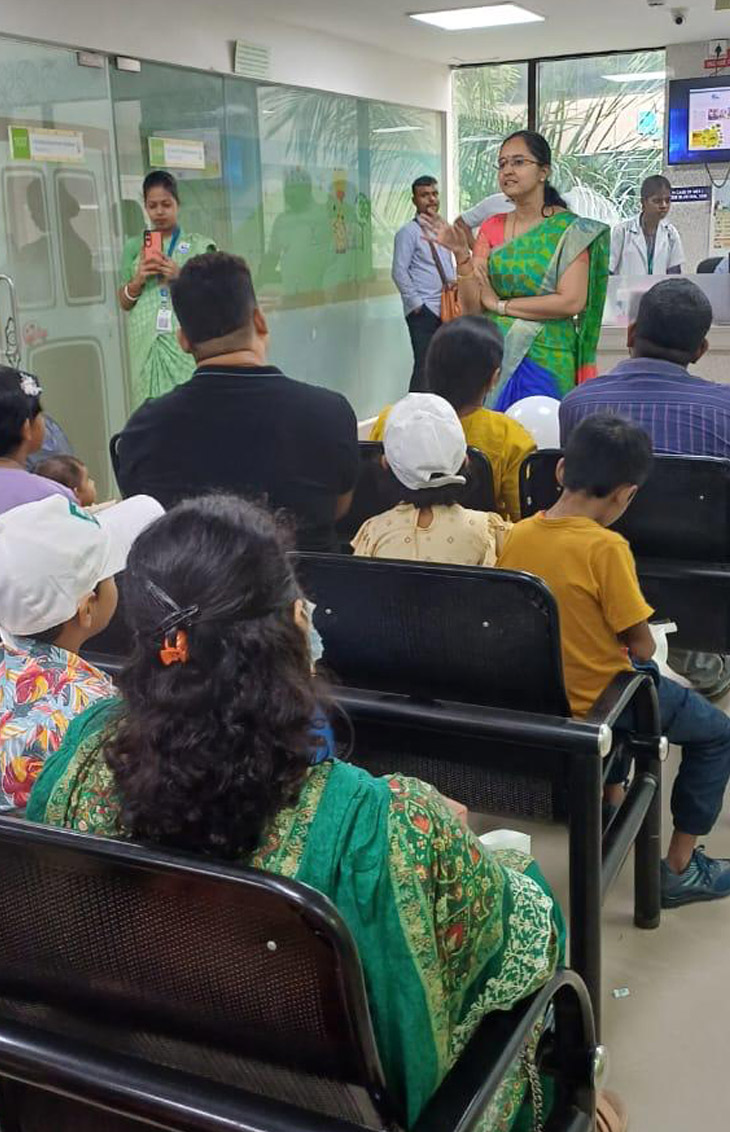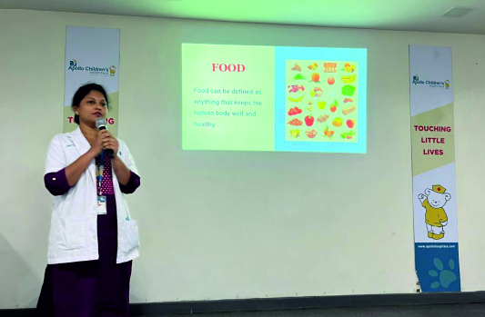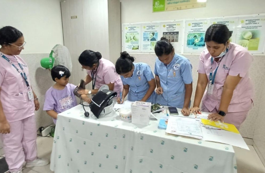 In addition to the educational talks and demonstrations, a health screening was conducted for all children attending the outpatient department (OPD). The screenings included measurements of height, weight, body mass index (BMI), body composition analysis, and blood sugar levels, providing valuable insights into their overall health.